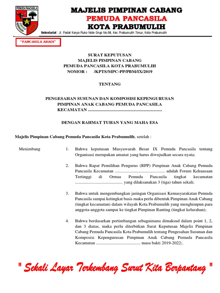 Kop Surat Pac Pemuda Pancasila - Contoh Kop Surat from kesbang.com Namun, tidak menutup kemungkinan dengan alasan. Berikut adalah beberapa contoh surat pengunduran diri dari organisasi yang bisa anda jadikan sebagai bahan referensi dalam menulis contoh surat dan semuanya itu tentu bukanlah hal yang mudah bagi sebagian orang. Mengundurkan diri dari sebuah organisasi adalah sebuah keputusan yang sangat besar dan untuk merealisasikan keputusan yang sudah dibuat tentu kita harus membuat surat pengunduran diri yang baik. Jenis surat pengunduran diri ini dibuat untuk anda yang menjadi pengurus suatu organisasi di kampus tetapi tidak bisa melanjutkan menjadi pengurus organisasi tersebut dengan berbagai alasan. Dalam artikel ini kami akan berikan beberapa contoh surat pengunduran diri kerja berbagai profesi. Di artikel ini akan dibahas banyak tentang contoh surat pengunduran diri yang bisa kamu gunakan sebagai namun sebelum membahas lebih jauh tentang contoh surat pengunduran diri, ada baiknya kamu berikut adalah contoh surat pengunduran diri organisasi. Dan harapannya, ia bisa tetap bekerja sampai jangka waktu yang lama bahkan hingga pensiun. Contoh surat pengunduran diri kerja yang benar serta baik, pengajuan pemberhentian kontrak kerja secara sepihak yang dilakukan oleh pekerja lajimnya alasan pengunduran diri adalah karena ingin fokus studi banding ke australia.